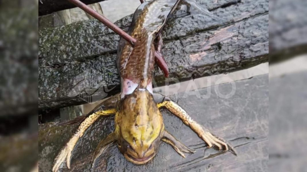 Na manhã desta quarta-feira (24), um grupo de pescadores na localidade do rio Cajuúba, no município de Muaná, foi surpreendido por uma descoberta peculiar enquanto puxava suas redes de malhadeira. Junto com os peixes habituais, uma criatura bizarra emergiu das águas, deixando os pescadores perplexos.