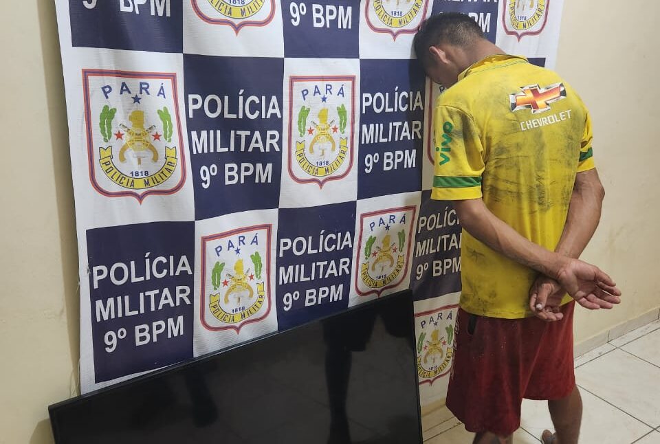A Polícia Militar de Breves, no arquipélago do Marajó, efetuou a prisão de um homem suspeito de invadir uma residência e furtar uma televisão de 42 polegadas. A ação ocorreu após denúncias da comunidade, culminando na captura do acusado, que foi conduzido à delegacia de Polícia Civil juntamente com o objeto furtado.